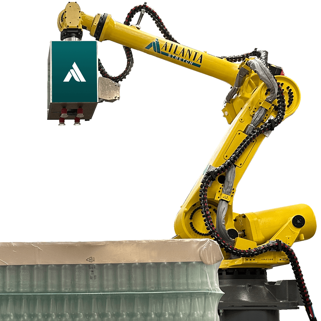 Sipario è il sistema robotizzato sviluppato da Atlanta Robotics per la rimozione automatica del film o della reggia dai pallet.